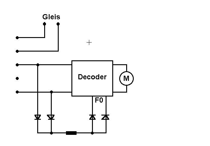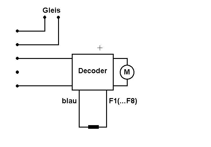 nicht direkt am Decoder, sondern über ein zwischengeschaltetes Relais.